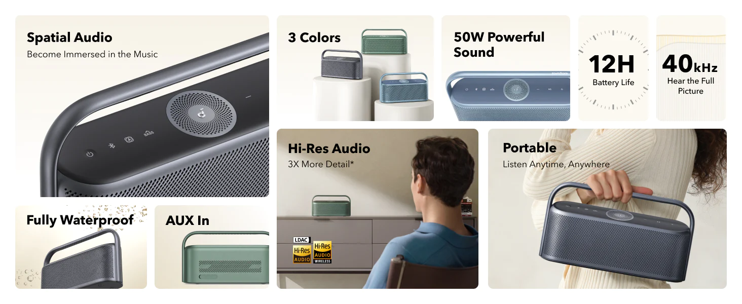 Immersive Spatial Audio: Inspired by theater acoustics, Motion X600 has 5 drivers and 5 amplifiers that are positioned to deliver sound all around you. Feel like you’re in the room with your favorite artist, every time you press play. 50W Room-Filling Sound: Whether you’re having a party or just enjoying your favorite tunes, the 50W sound will fill any space with rich, high-quality sound that brings music to life. Take lmmersive Music Anywhere: Portable and lightweight, Motion X600 is easy to carry between rooms to transform any part of your home into an immersive listening space. 12-Hour Playtime: Keep listening to…