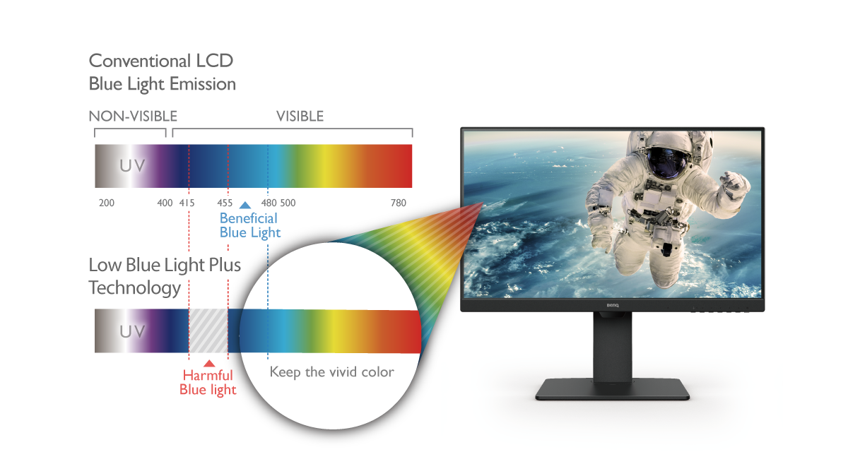 BenQ’s exclusive eye-care technologies reduce eye fatigue for user’s comfort, enhanced productivity, and workplace safety during extended use.