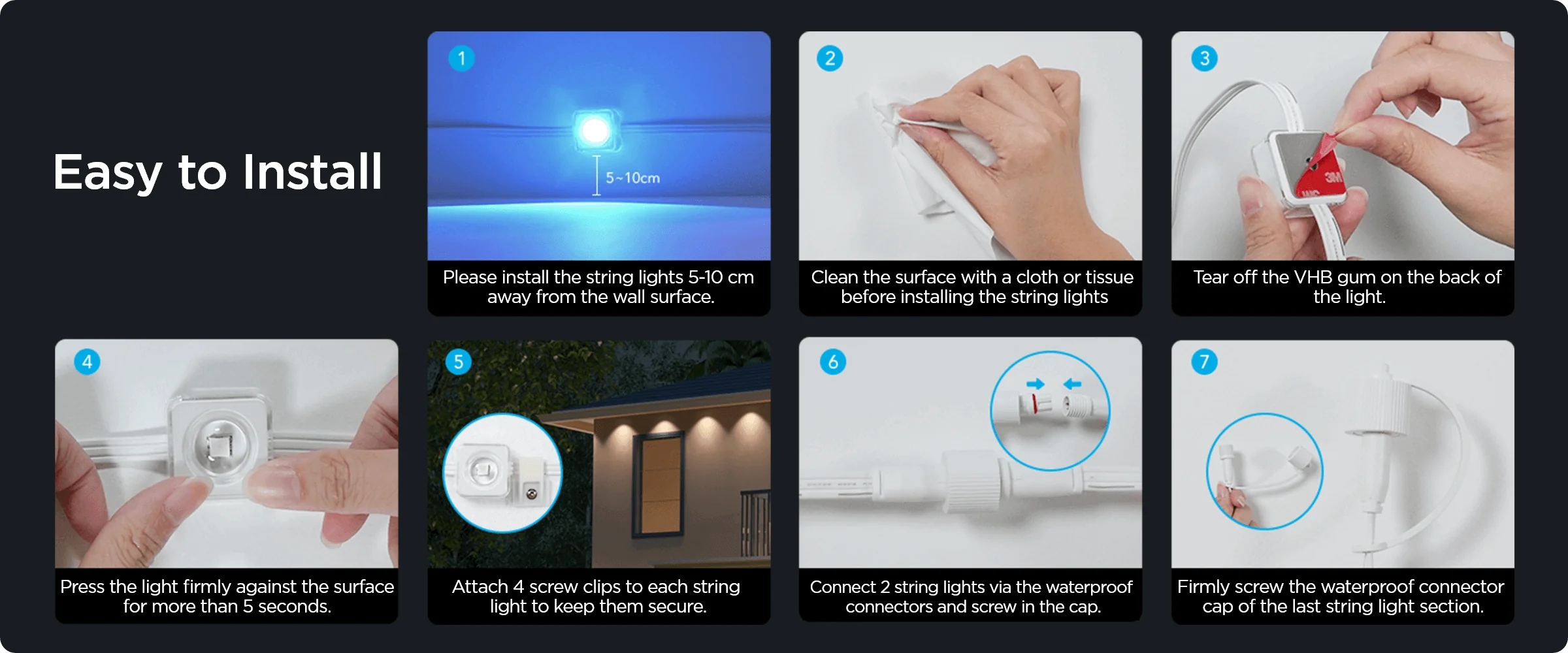 The installation process is a breeze with the provided VHB glue and clips, allowing you to set up each light in only 8 seconds.