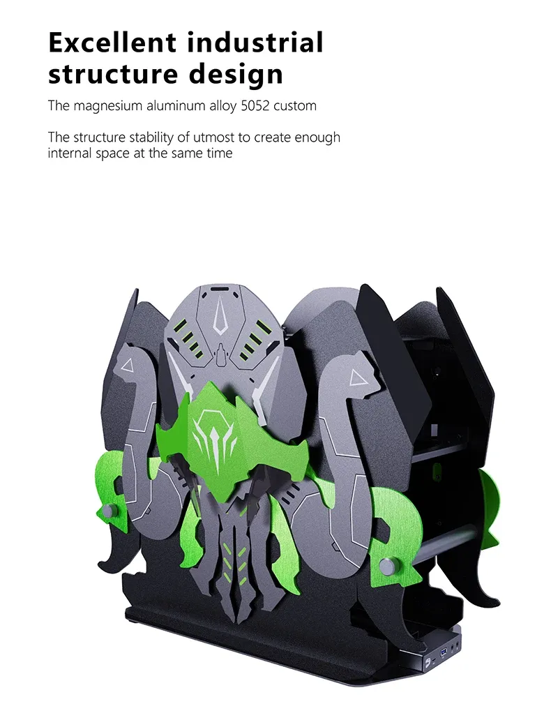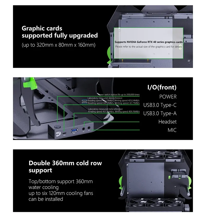 Premium Build: Made from durable and lightweight 5052 aluminum alloy Motherboard Support: Compatible with ATX, Micro-ATX, and Mini-ITX Cooling Options: Supports air coolers and AIO liquid cooling (top/bottom, up to 360mm radiator) GPU Support: Fits GPUs up to 320mm (L) × 80mm (W) × 160mm (H) Front I/O Ports: 1 × USB 3.0 Type-A 1 × USB 3.0 Type-C 1 × Headphone jack 1 × Microphone jack PSU Compatibility: Fits power supplies up to 208mm (L) × 170mm (W) × 100mm (H)