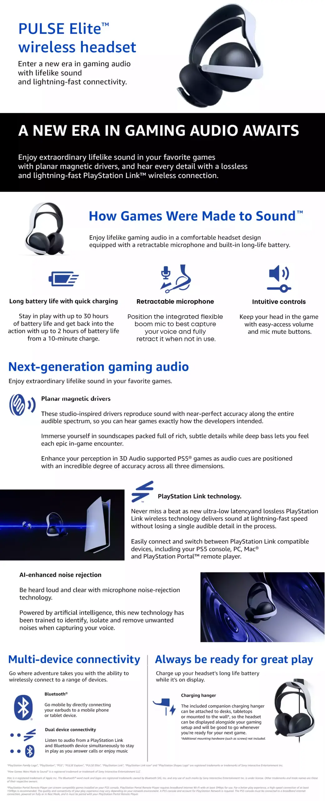 Never miss a beat, as new ultra-low latency and lossless PlayStation Link™ wireless technology delivers sound at lightning-fast speed, without losing a single audible detail in the process. Easily connect and switch between PlayStation Link compatible devices, including your PS5 console, PC, Mac and PlayStation Portal™ remote player.
