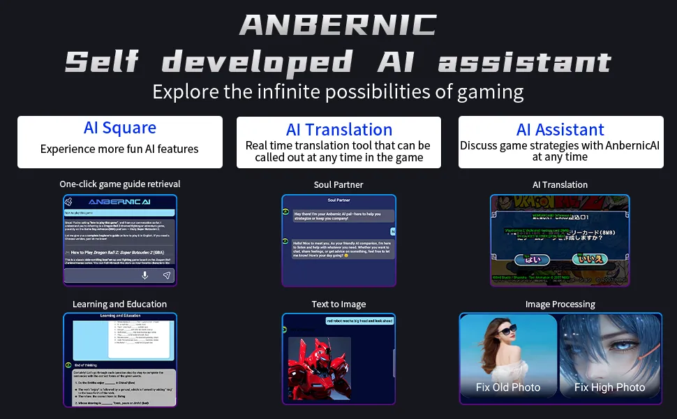 Unisoc T820 (6nm) – High-performance 5G chip with Mali-G57 GPU, 8GB RAM & 128GB UFS 2.2 for smooth Android & emulator gaming Slide Design – Auto spring-loaded slide rail with silky, stable opening and precise anti-interference joysticks 5G Wi-Fi + Bluetooth 5.0 – Supports online play, streaming, 1080p USB-C output, and FOTA updates AI Features – One-click guides, real-time translation, image generation, smart dialogue & more 4.7” LTPS Display – Multi-touch, 1280×960 resolution, 120Hz refresh rate, OCA laminated 5000mAh Battery – Up to 6 hours playtime, fast USB-C charging Extras – RGB joystick lighting, vibration motor, and full system customization