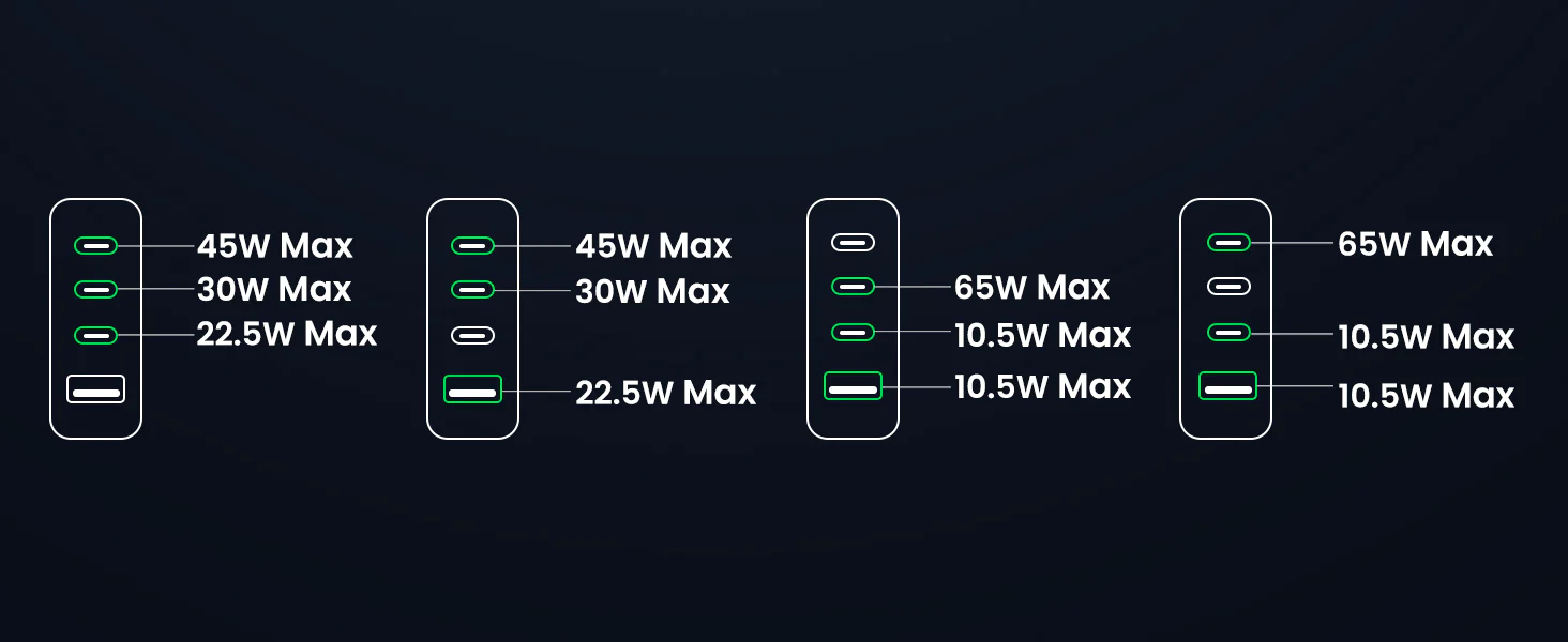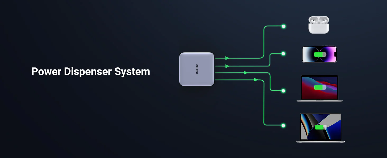 100W Max Fast Charge 4-in-1 Multiport Charger Complete Safety & Reliability Broad Compatibility More Ports, More Freedom